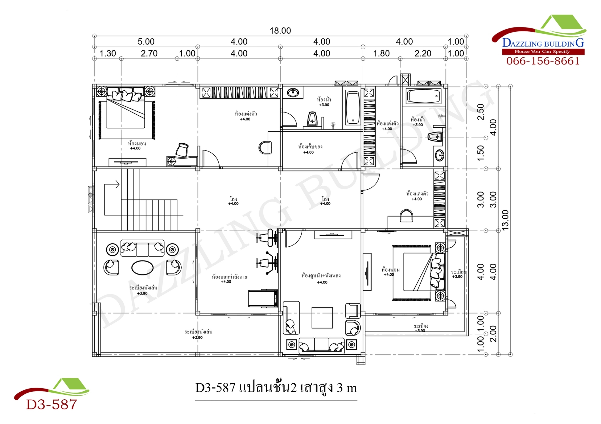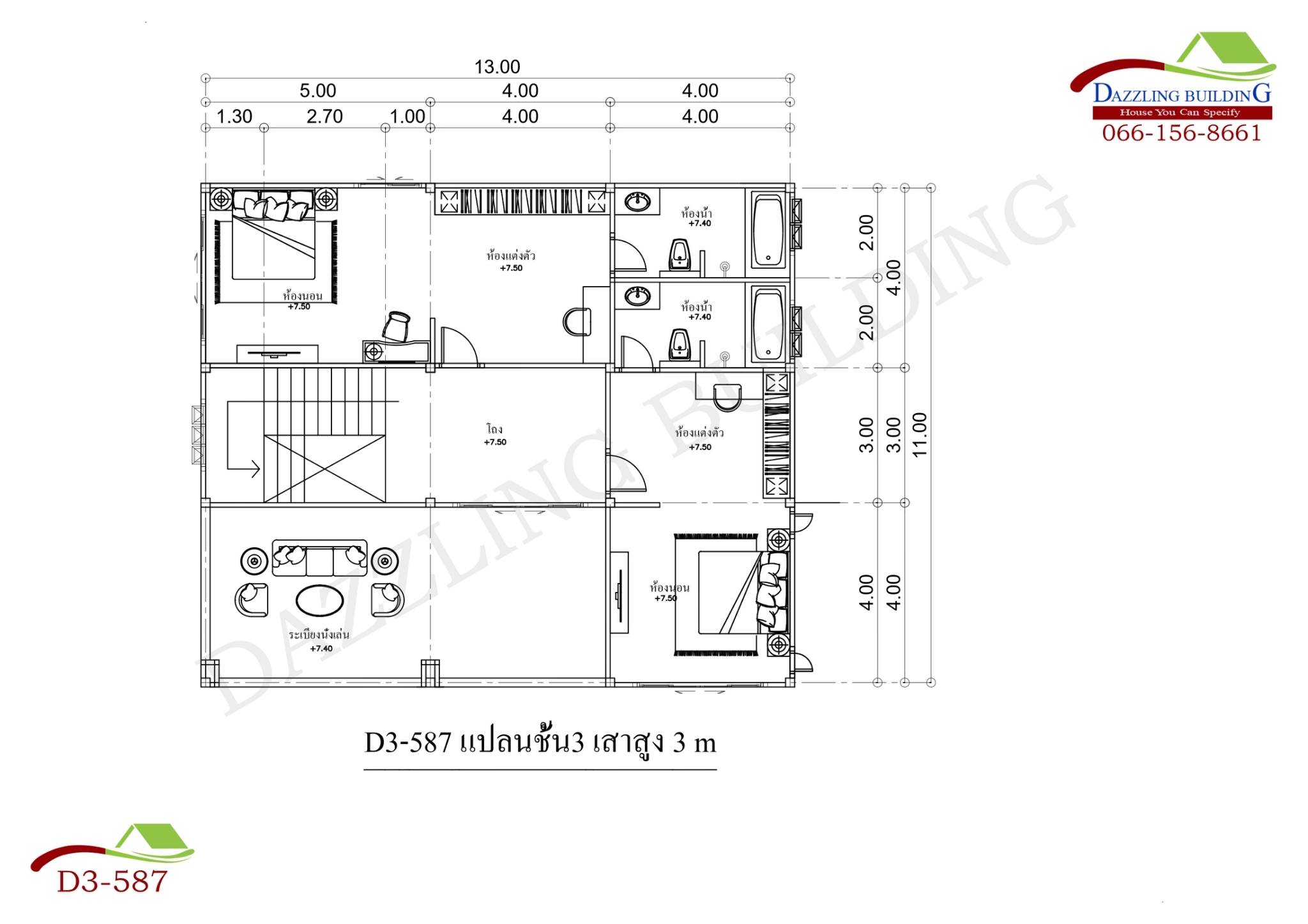แบบบ้าน 3 ชั้น – D3-587 sqm